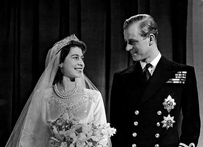 ALIANȚĂ Prințesa Elizabeth s-a căsătorit cu Philip Mountbatten, fost prinț al Greciei și Danemarcei, în 1947. Căsătoria lor a durat până la moartea acestuia, la 99 de ani, în 2021.