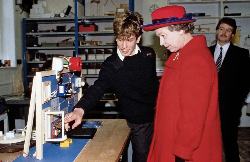 UITE! Vizitându-l pe nepotul Peter Phillips la școala sa, în 1991. Phillips este fiul prințesei Anne și al primului ei soț, Mark Phillips.