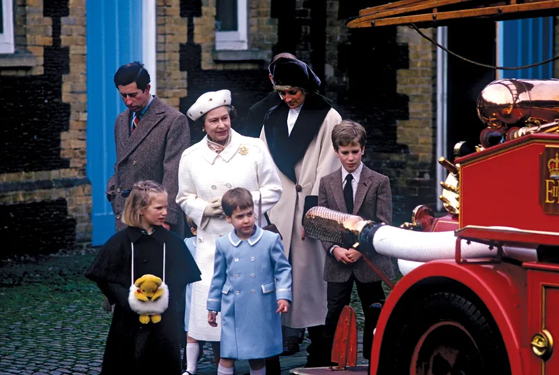 MONARH Cu (în sensul acelor de ceasornic de la stânga sus) Prințul Charles, Prințesa Diana, Prințul William și nepoții Peter și Zara Phillips, în 1988.