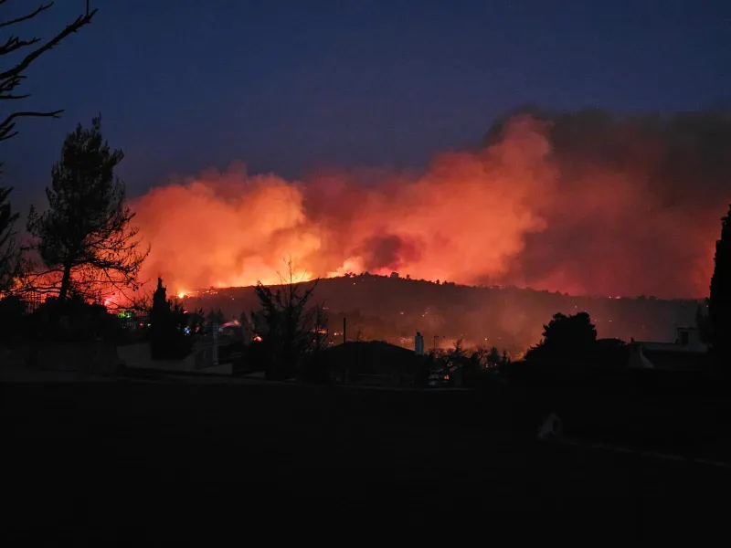 Serviciile de urgență au trimis 30 de mesaje localizate pentru a cere locuitorilor din suburbia nordică Dionysos să se evacueze spre Kifissia.