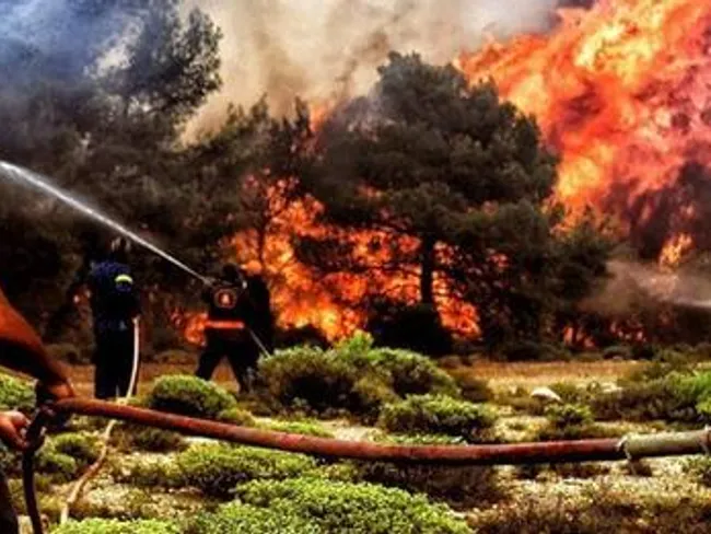 Avioane şi elicoptere de stingere a incendiilor au fost mobilizate la prima oră în lupta cu flăcările, a relatat televiziunea publică ERT.
