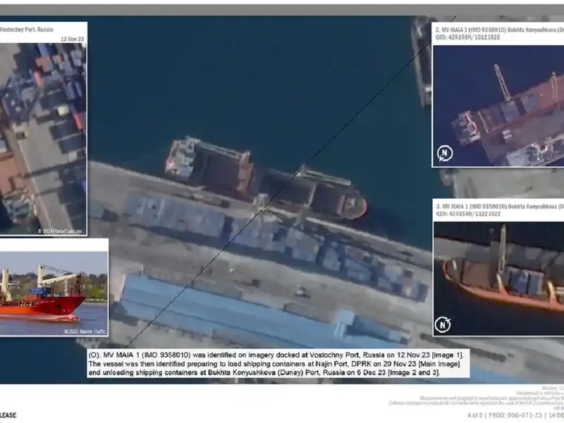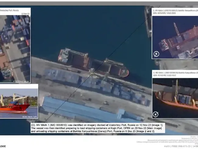 Un raport nepublicat al serviciilor de informații ale apărării din Marea Britanie, consultat de The Guardian, arată imagini realizate între septembrie și decembrie cu trei nave rusești, Maia, Angara și Maria, care încarcă containere în portul Najin, reînviat în Coreea de Nord, înainte de a tranzita spre porturile rusești din Orientul Îndepărtat.