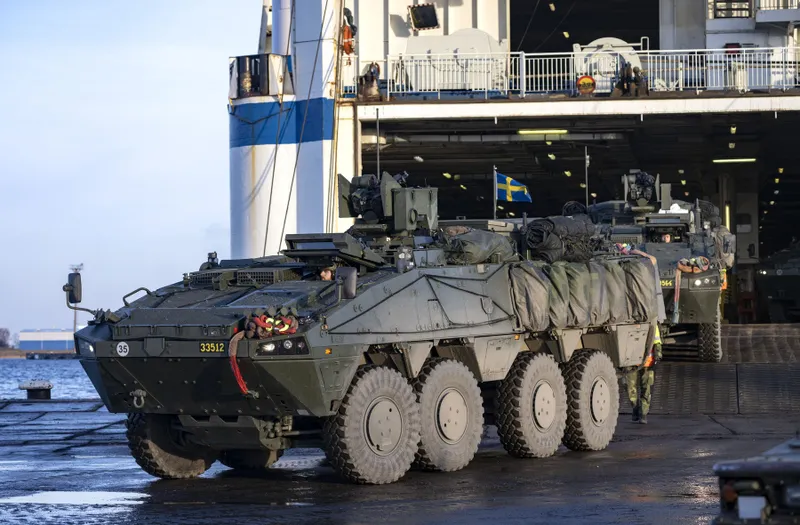 Odată cu militarii, au fost debarcate și vehicule blindate suedeze CV90 pe șenile, un model prezent pe frontul ucrainean și apreciat pentru capacitățile sale moderne.