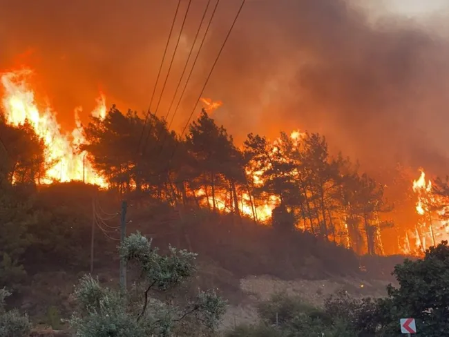 În Mugla, temperaturile ridicate şi vântul puternic au continuat să zădărnicească intervenţiile pompierilor.