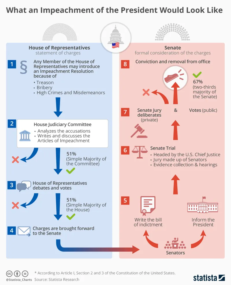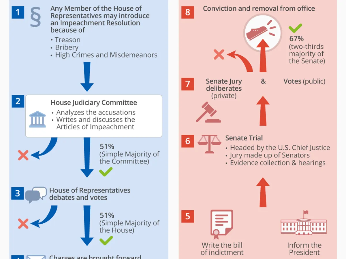 Republicanii sunt majoritari în fața democraților, 53 la 47. O destituire a liderului de la Casa Albă este puţin probabilă, în condiţiile în care tabăra republicană face bloc comun în spatele său.