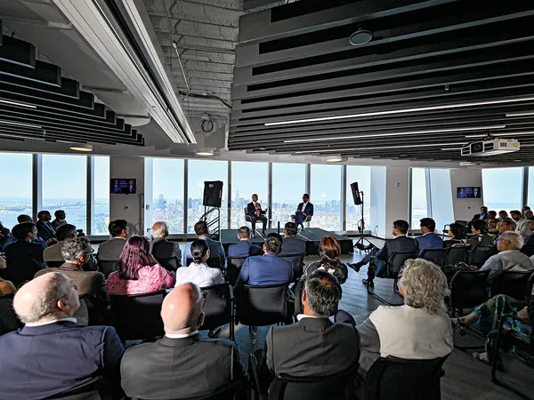 Dave Pragad, director executiv al Newsweek, și Subrahmanyam Jaishankar, ministrul afacerilor externe al Indiei