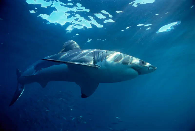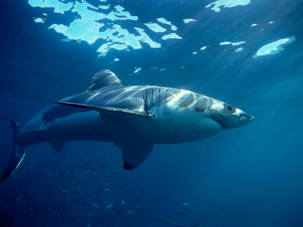 Marele rechin alb este o specie de rechini destul de mari și voluminoși, cu botul ușor ascuțit și cu o înotătoare triunghiulară pe spate.