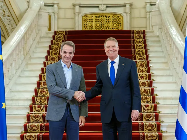 Klaus Iohannis l-a primit, miercuri, la Palatul Cotroceni, pe premierul grec Kyriakos Mitsotakis, care a venit direct de la Odesa. În timpul vizitei în Ucraina, premierul grec a fost martor al unui atac rusesc cu rachete asupra orașului ucrainean.