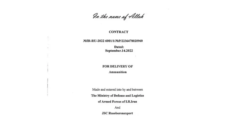 Iranul furnizează muniție Rusiei împotriva Ucrainei. Unul dintre contracte a ajuns în mass-media. Canalul Sky News a văzut un contract între Teheran și Moscova, conform căruia Iranul a vândut rușilor diverse tipuri de muniție pentru mai mult de un milion de dolari.