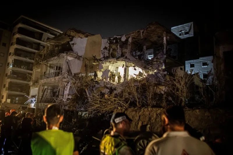 Soldați ai comandamentului frontului intern israelian lângă o clădire lovită de o rachetă balistică iraniană în Ramat Gan - Foto: Profimedia Images
