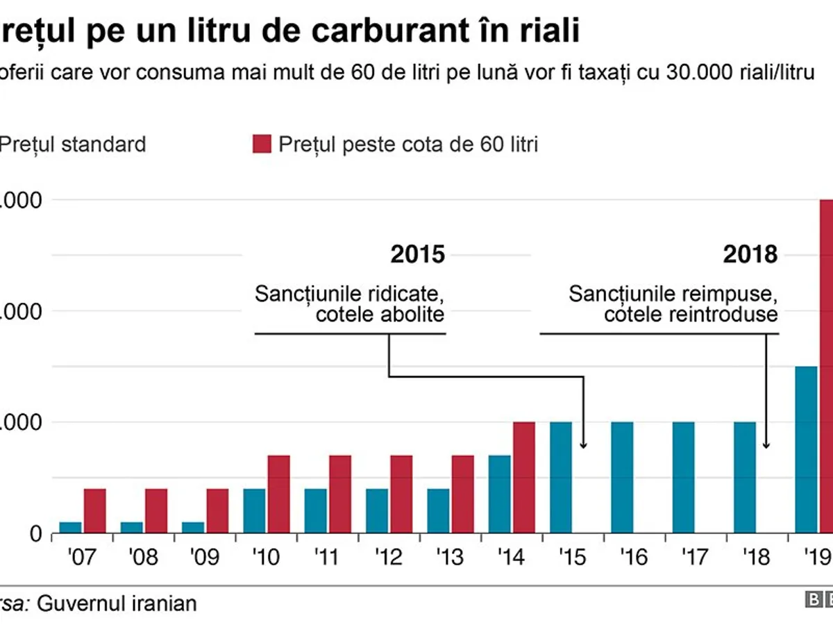 În noiembrie 2019, guvernul a anunțat pe neașteptate că a tăiat subvențiile pentru industria petrolieră, ceea ce va duce la o creștere a prețului petrolului cu 50%, până la 15.000 de riali pe litru (0,12 dolari, 0,09 lire sterline la cursul oficial de schimb).