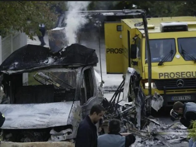 Ei au reuşit astfel să sustragă încărcătura de bani, apoi au incendiat vehiculul şi au fugit cu două autoturisme. Niciunul dintre angajații care păzeau încărcătura nu a fost rănit.