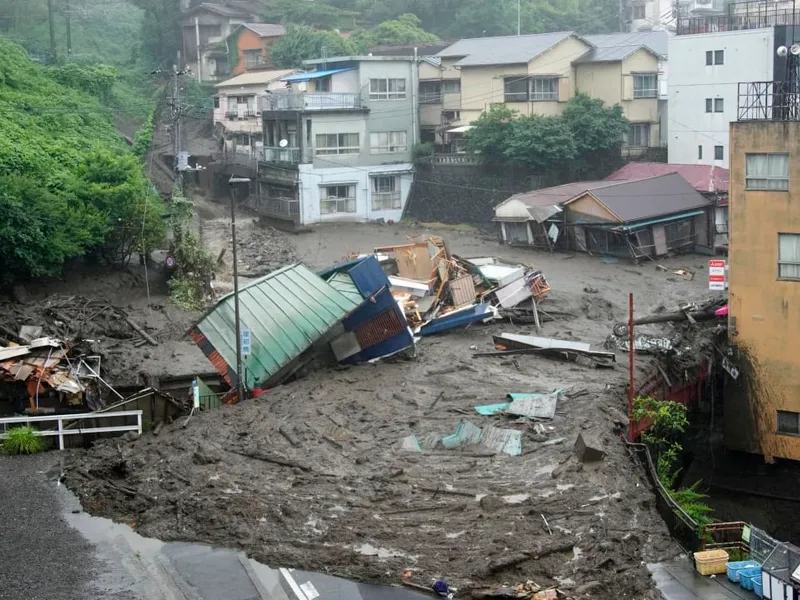 Oficialul local a declarat că aproximativ 130 de case şi clădiri au fost avariate în Atami, unde buldozere au fost trimise pentru pentru îndepărtarea noroiului, în încercarea de a-i găsi pe cei dispăruți.