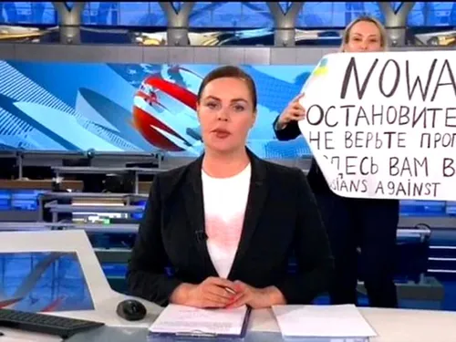 La mijlocul lunii martie, la câteva zile după declanşarea ofensivei în Ucraina, Marina Ovsiannikova a întrerupt jurnalul de ştiri de pe Pervîi Kanal, unde ea lucra ca jurnalistă de aproape 20 de ani. Ea a afişat în direct o pancartă prin care cerea încheierea luptelor şi îi îndemna pe ruşi "să nu creadă propaganda".