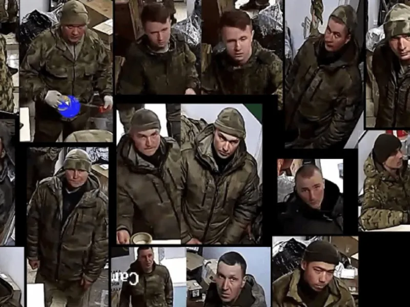 La 3 aprilie, proiectul Belaruski Haiun a publicat mai mult de 3 ore de înregistrări video de la o cameră de supraveghere a biroului serviciului de livrare CDEK din Mozyr, Belarus, în apropiere de frontiera de stat cu Ucraina. Înregistrarea video arată în mod clar fețele și unele chevron pe mâneci ale ocupanților. Invadatorii au aranjat livrarea articolelor jefuite în Rusia.