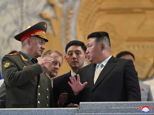 Paradă militară fastuoasă la Phenian. Avându-l alături pe ministrul rus al Apărării, Serghei Șoigu, liderul nord-coreean, Kim Jong-un, și-a etalat noile drone de atac şi rachete balistice intercontinentale cu capacitate nucleară.