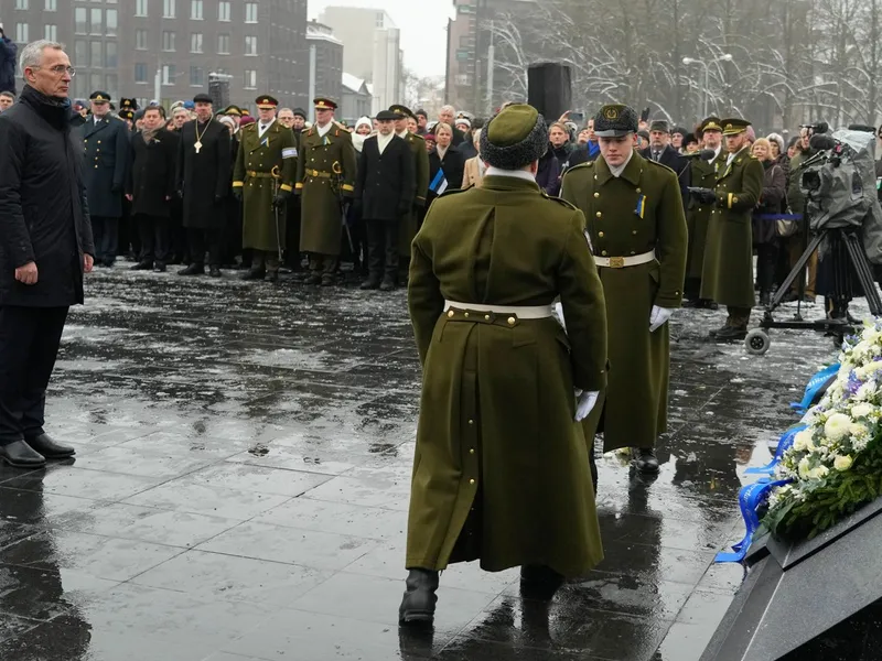 Stoltenberg a vorbit la o conferință de presă alături de președintele Comisiei Europene, Ursula von der Leyen, și de premierul estonian Kaja Kallas, la Tallinn, pentru a marca aniversarea Declarației de Independență a Estoniei și prima aniversare a războiului Rusiei împotriva Ucrainei.