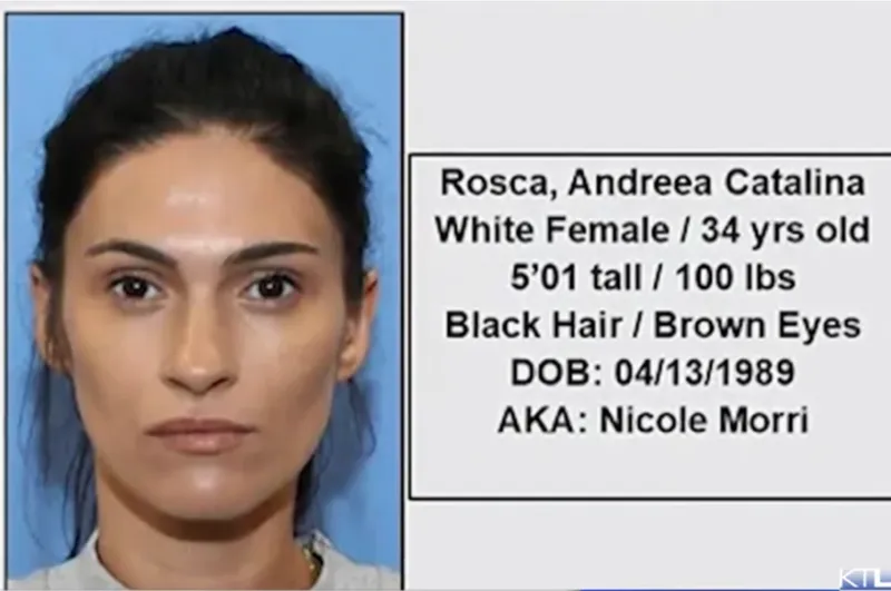 Românca hoață are 34 de ani, 170 cm și cântărește circa 45 de kg. Aceasta are părul de culoare închisă și ochi căprui. Pe numele Andreei Cătălina Roșca a fost emis un mandat de arestare. Mai mult, se pare că aceasta face parte dintr-o bandă de crimă organizată specializată pe furturi. Andreea ar fi recurs și în trecut la cărți de identitate false care au fost folosite pentru a face achiziții frauduloase, în valoare totală de peste 67.000 de dolari în bijuterii.