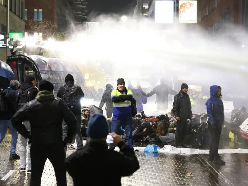 Poliția olandeză a folosit vineri un tun cu apă pentru a dispersa protestatarii de la Haga care aruncau cu pietre și trăgeau focuri de artificii pentru a protesta față de o nouă carantină parțială anunțată de guvern pentru a contracara o revenire în forță a pandemiei de Covid-19, potrivit unui jurnalist AFP.