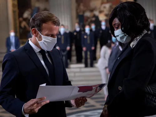 La Panteonul din Paris, un mausoleu dedicat eroilor Franţei, Macron le-a înmânat documentele franceze unui număr de cinci noi cetăţeni la o ceremonie solemnă organizată pentru a marca 150 de ani de la instalarea celei de-A Treia Republici.
