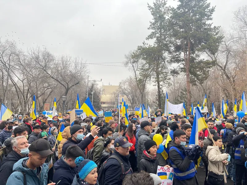Proteste pentru susţinerea Ucrainei şi împotriva războiului au loc în acest moment la Almatî, în Kazahstan.