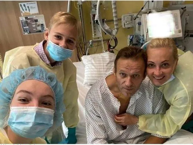 Navalnîi a distribuit marți o fotografie din spitalul din Berlin, înconjurat de familia sa, spunând că acum poate să respire singur, după ce a fost otrăvit în Siberia luna trecută.