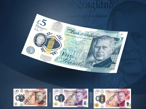 Banca Angliei a dezvăluit noua înfățișare a bancnotelor cu imaginea regelui Charles al III-lea. Portretul va fi singura modificare a modelelor existente ale bancnotelor de 5, 10, 20 și 50 de lire sterline și va intra în circulație începând cu jumătatea anului 2024.