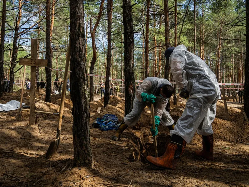 "Lucrările de exhumare au continuat astăzi la Izium, regiunea Harkiv. Sunt examinate cadavrele. Au fost găsite noi dovezi ale torturii folosite împotriva persoanelor îngropate acolo. Peste zece camere de tortură au fost deja găsite în zonele eliberate din regiunea Harkov - în diferite localităţi.