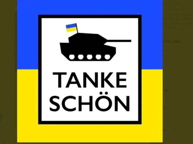 Ministrul de externe al Lituaniei a postat pe Twitter o fotografie cu culorile Ucrainei, un tanc și un joc de cuvinte, "Tanke Schon", care s-a viralizat rapid pe internet.