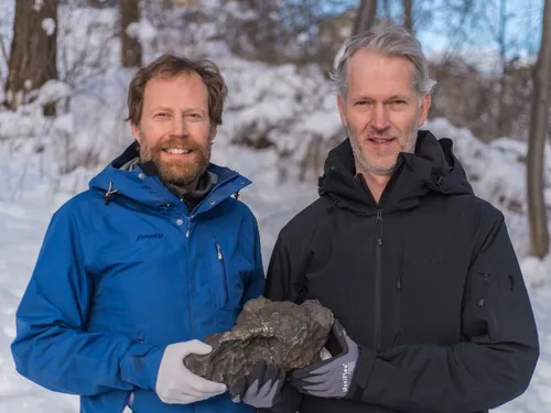 Andreas Forsberg și Anders Zetterqvist, doi geologi din Stockholm, au descoperit meteoritul de fier de 14 kilograme, despre care astronomii cred că este cea mai mare parte care a rămas în urma impactului, pe 5 decembrie, dar și-au păstrat descoperirea secretă până luna trecută.