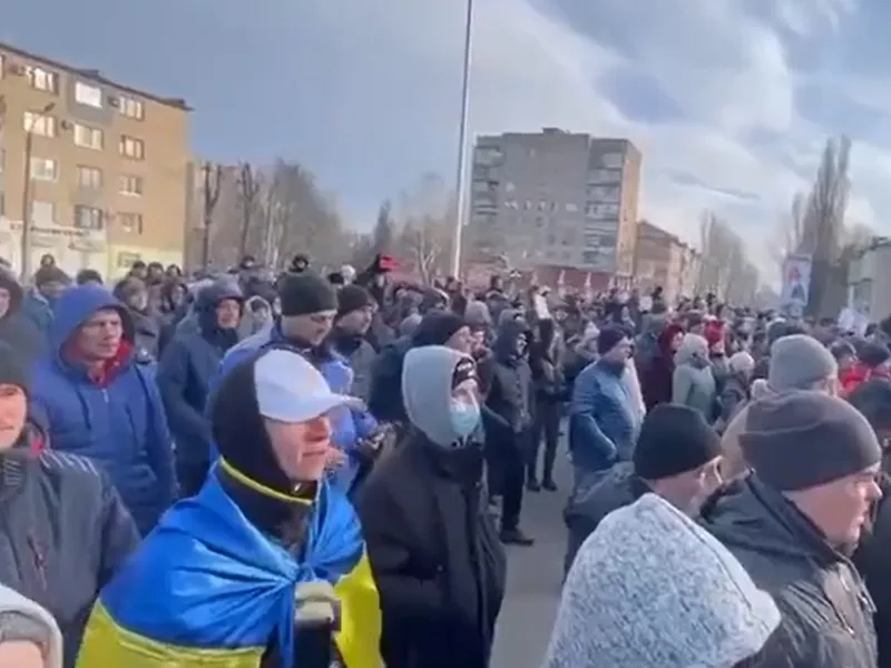 ”Libertate pentru primar” şi ”Fedorov”, a scandat mulţimea, potrivit unui scurt videoclip postat pe Facebook. Peste 2.000 de oameni s-au adunat în faţa clădirii ocupate de trupele ruse cerând eliberarea oficialului, transmite news.ro.