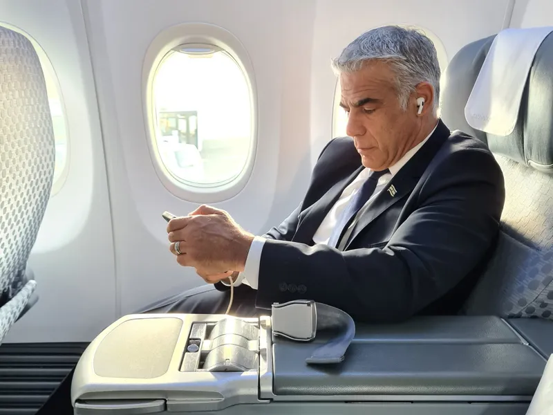 Lapid a postat pe contul său de Twitter o fotografie în avion, însoţită de cuvintele: "Decolez pentru o vizită istorică în Emirate".