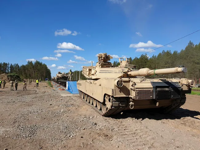 Peste 10 tancuri Abrams au trecut frontiera lituaniană venind din Polonia, sâmbătă după-amiază, potrivit unui fotograf al AFP.