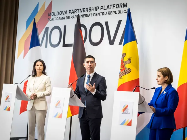 Baerbock a fost însoțită de omologii săi din Franța, România, Polonia, Țările de Jos și Lituania, în cadrul Platformei de parteneriat cu Moldova, o inițiativă europeană menită să sprijine această țară în fața provocărilor economice și a dezinformării ruse.
