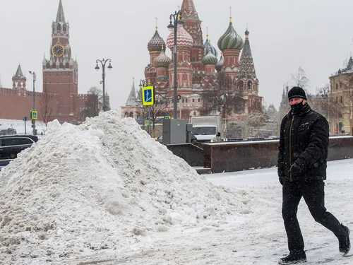 Piatra cubică din Piaţa Roşie din centrul Moscovei a fost acoperită în zori de un strat gros de omăt, iar ninsorile au redus vizibilitatea trecătorilor şi conducătorilor de automobile.