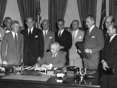 Ratificând aderarea SUA la Alianță, Truman a declarat că aceasta este „un scut împotriva agresiunii și a fricii de agresiune”.