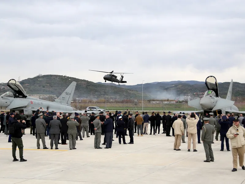 NATO a inaugurat prima bază aeriană tactică în Balcani. Vizează Rusia cu avioane F-16, F-35, drone. Avioane Eurofighter italiene, F-16 și F-35 americane, elicoptere Blackhawk au zburat pentru inaugurarea bazei de la Kucova, Albania.