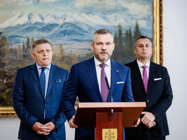 Marţi, Pellegrini a declarat că privilegiază o coaliţie cu partidul lui Fico şi cu SNS, naţionalist, în locul alternativei unei coaliţii cvadripartite cu formaţiuni de dreapta care, în politica externă, doresc menţinerea sprijinului militar pentru Ucraina în războiul cu Rusia, iar la nivel european au poziţii apropiate de Bruxelles, în timp ce Fico este mai apropiat de abordările premierului ungar Viktor Orban şi a anunţat încă din campania electorală că se opune ajutorului militar pentru Ucraina.