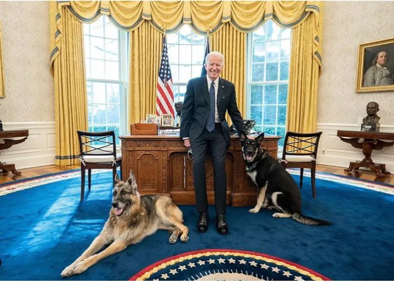 Președintele Joe Biden este însoțit peste tot de cei doi câini ai săi, Major și Champ, insituind o nouă regulă în Biroul oval: ședințe „securizate” de patrupezi, după cum arată postările de pe pagina Casei Albe..