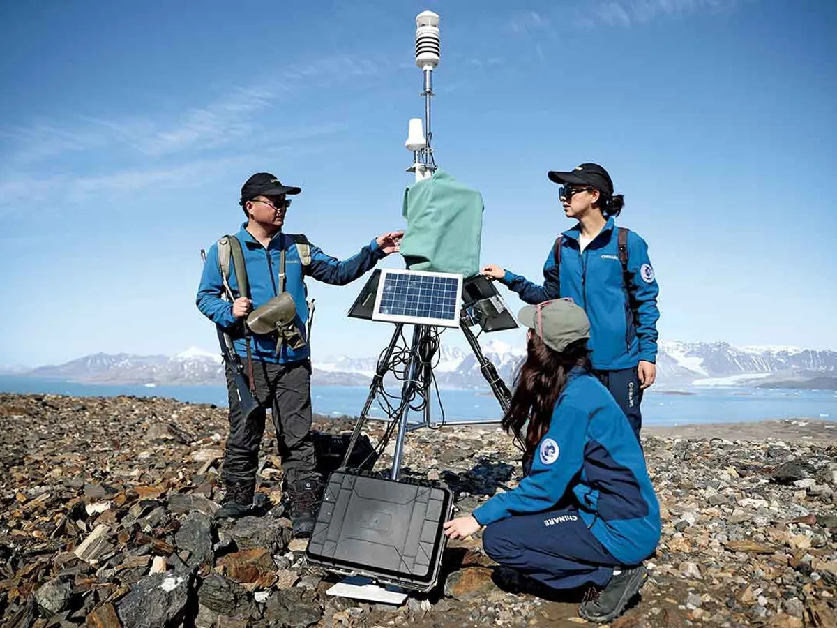 În timp ce vara arctică topește urmele urșilor polari de pe gheața mării din jurul insulei norvegiene Spitsbergen, zeci de oameni de știință chinezi sosesc la o instalație păzită de un tip foarte diferit de creatură albă - leii de piatră din Shanghai.