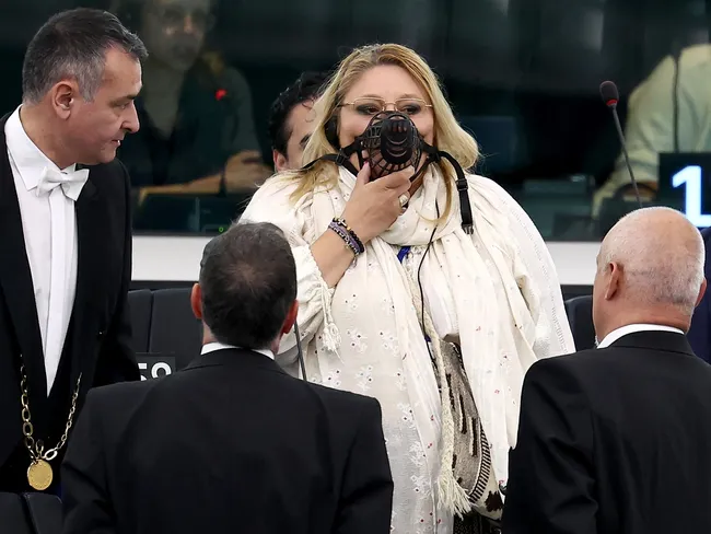 Șoșoacă a venit la dezbaterile pentru alegerea președintelui Comisiei Europene purtând o botniță de câine și un sac pentru cadavre, acuzând-o pe Ursula von der Leyen de responsabilitatea pentru decesele din timpul pandemiei.