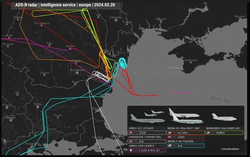 La 6 martie, observatorii traficului aerian au înregistrat două avioane grele de recunoaștere, o dronă cu rază lungă de acțiune, un tanc aerian și cel puțin un avion de luptă Typhoon care opera în aceeași zonă ca miercuri.