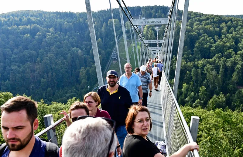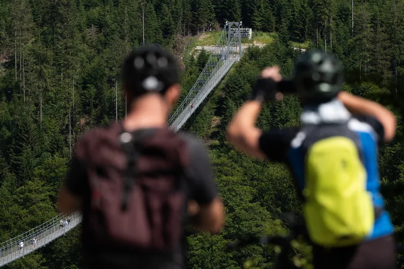 În fiecare an, mii de oameni urcă pe dealul din Willingen pentru a-l vedea: cel mai lung pod pietonal suspendat din Germania.