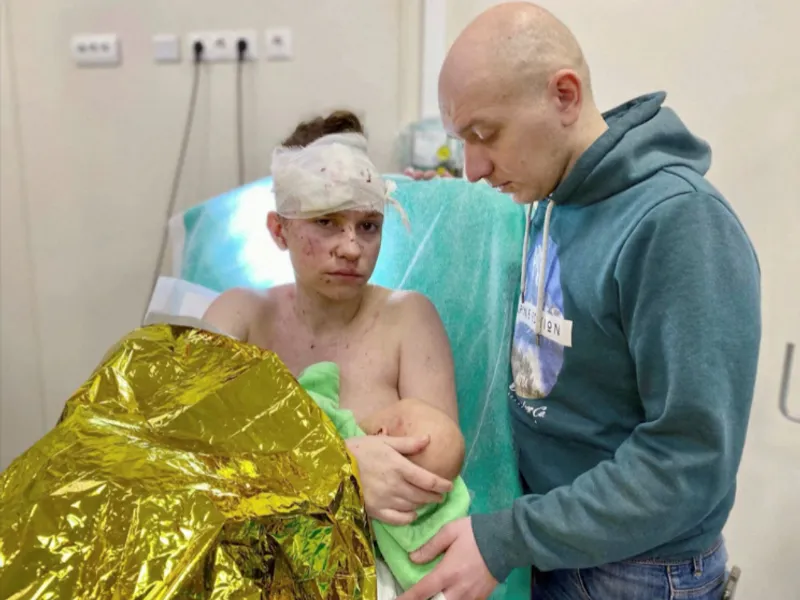 Fotografiile cu Olga, cu capul bandajat și partea superioară a corpului acoperită de tăieturi, în timp ce își ține în brațe bebelușul, Victoria, au apărut pe scară largă pe rețelele de socializare, într-o imagine care încapsulează prețul greu plătit de civili în invazia Rusiei în Ucraina.