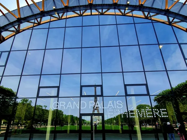 O nouă construcție, de sticlă, ridicată în fața Turnului Eiffel