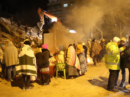 Oamenii așteaptă în zona afectată de cutremur în timp ce salvatorii lucrează pentru a-i elibera pe alții din dărâmături. Turcia s-a confruntat cu cel mai mare cutremur din acest secol în regiunea de frontieră cu Siria.