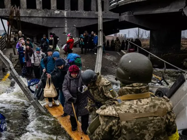 Footage circulating this morning shows what looks like a corridor for civilians to leave the city of Irpin near Kyiv coming under fire from Russian troops. #Ukraina #Kyiv #Kharkov #UkraineUnderAttaсk #StopPutinNOW #RussiaInvadedUkraine #Zaporizhzhia #Kiev #Kharkiv pic.twitter.com/y6VgqsAHPw