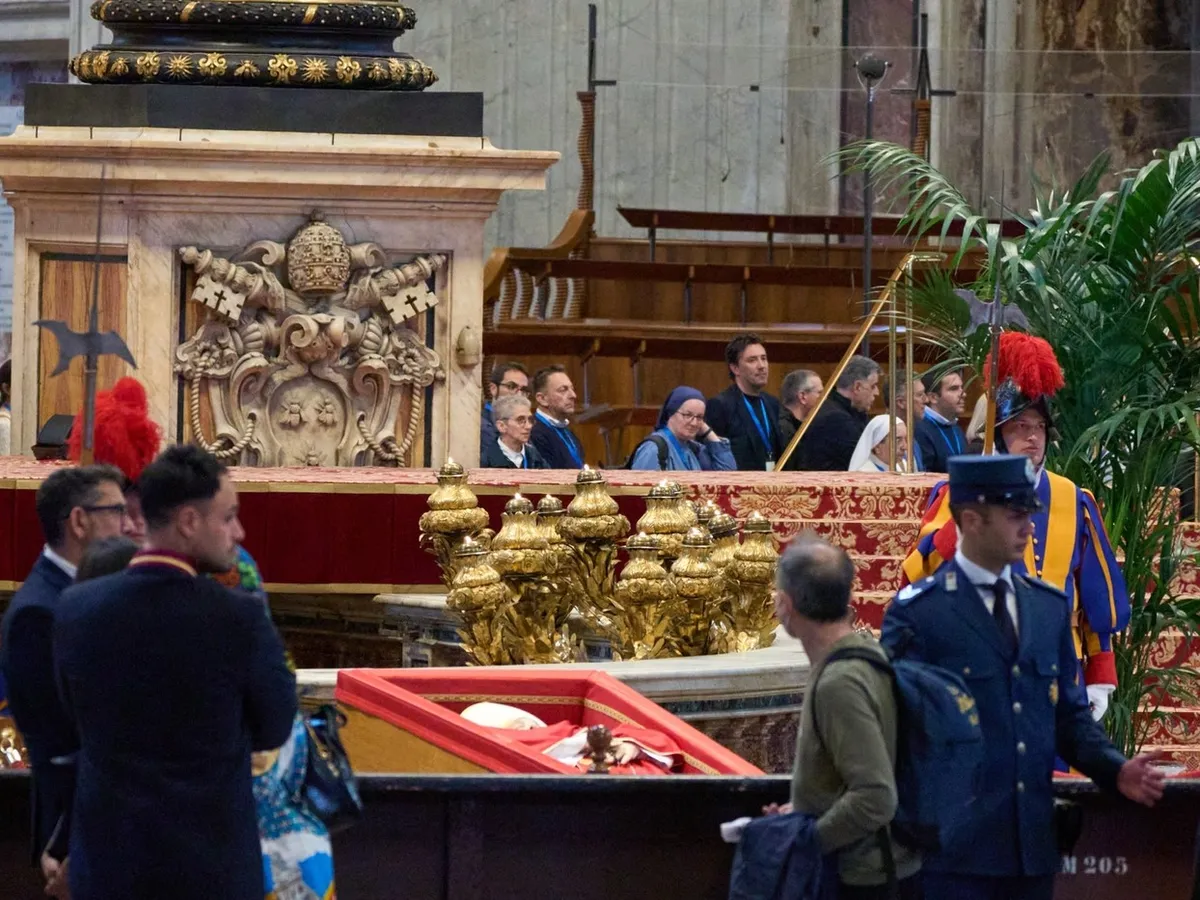 Sicriul a fost așezat în fața mormântului Sfântului Petru și a impunătorului baldachin al lui Bernini, iar zona a fost împrejmuită astfel încât oamenii să poată sta la o anumită distanță.