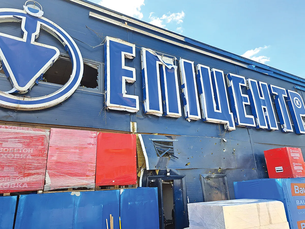 Am ajuns și la ultimul hypermarket, Epițentr, care a funcționat până de curând în Kherson, dar care a fost bombardat, 8 persoane pierzându-și viața și multe alte fiind rănite. După atac, și-a încetat activitatea.
