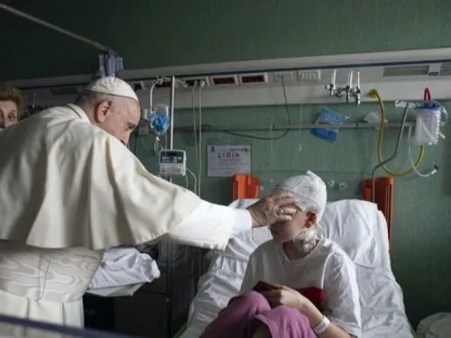 Papa Francisc a vizitat spitalul de pediatrie din Vatican „Bambino Gesu” unde sunt internați copiii ucraineni care sunt tratați după ce au fugit de războiul din patria lor.